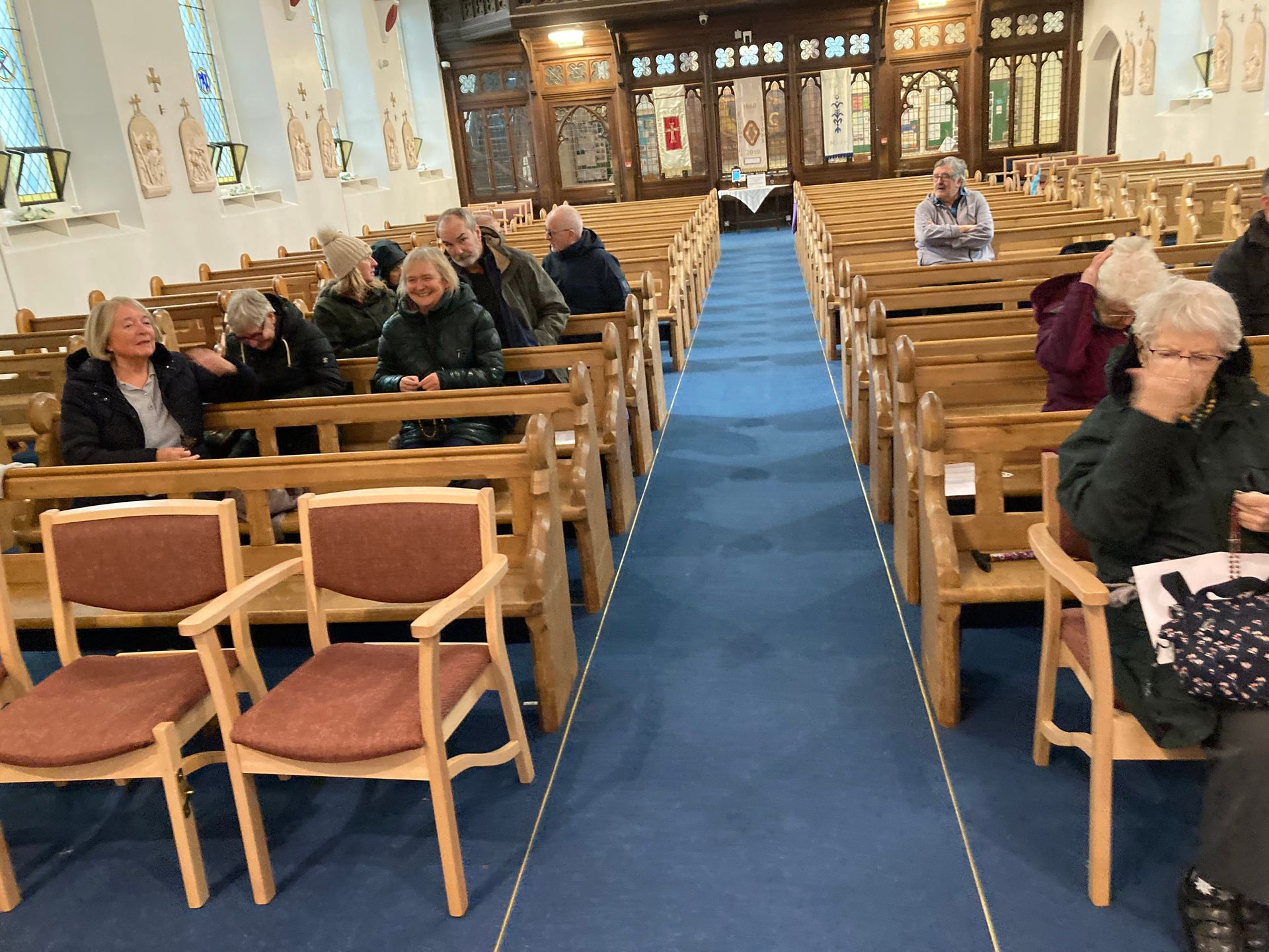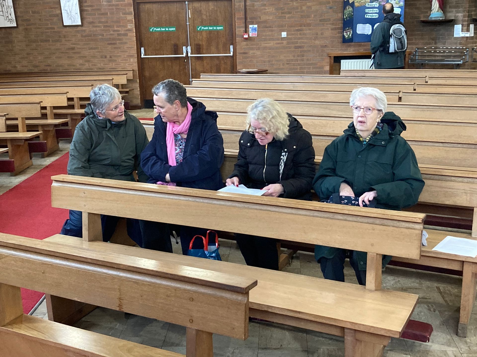 We arrived at St Mark’s to the sound of the hymn ‘All Are Welcome’, and welcomed by Fr Peter McGrail, who led us in our final decade. After his blessing, we retired to St Mark’s Annexe, where very welcome cups of tea and coffee and nibbles (including cake!) were available, courtesy of the wonderful members of St John Vianney Ladies Group. Thank you very much, ladies. We were able to pick up a small bag of souvenir chilli peppers (ask Ann Farrell) and to purchase woollen dishcloths, with the proceeds going to Missio (ask Ann Farrell again; dishcloths still available!).